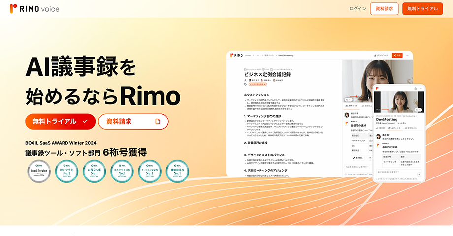RIMO Voiceは、日本語に特化したAIを強みとするサービスで、高度な話者分離機能が特徴です。