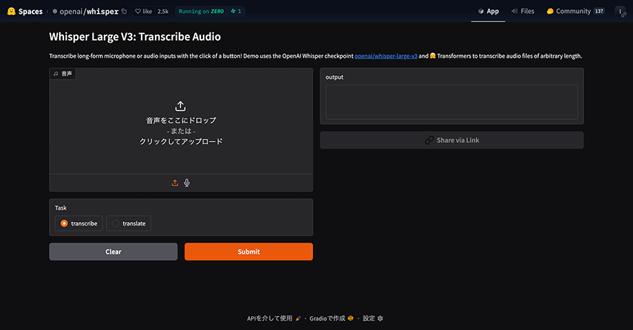 Whisperは完全無料で利用可能な音声認識エンジンで、オープンソースで提供され、カスタマイズが可能です。社内に知識のある方やエンジニアがいる場合は「Google Colaboratory」にて環境構築を行うことで、無料で利用することが可能です(下記サイトから実際に試すことも可能です)。